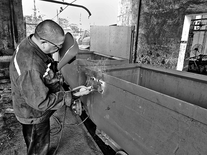 今年來,福建煤電公司龍?zhí)睹旱V對(duì)新購進(jìn)的礦車實(shí)施統(tǒng)一編號(hào),并建立信息管理系統(tǒng),以加強(qiáng)礦車管理,實(shí)現(xiàn)對(duì)礦車運(yùn)行狀態(tài)的實(shí)時(shí)監(jiān)控和數(shù)據(jù)統(tǒng)計(jì),從而提升設(shè)備管理效率。圖為3月17日,礦車修班維修工為礦車焊接“數(shù)字身份證”。(陳思忠 攝)