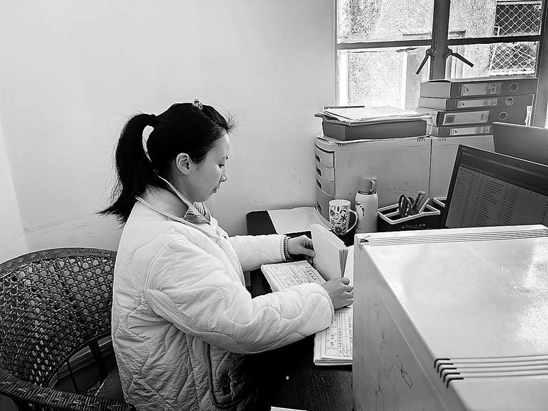 (張萍 攝影報道)圖為黃小華正在核對憑證數(shù)據(jù)