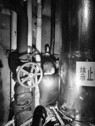 搶修就是命令,時間就是效率。發(fā)現(xiàn)漏水后,搶修人員以最快的速度奔赴現(xiàn)場;公司領導馬上到場指揮,通知關閉相關樓層的供暖閥門,開展泄水作業(yè);工程部人員擠入狹小的管井內(nèi)進行維修;緊急調(diào)撥吸水器、封堵布草保護旁邊的電梯房、強弱電房;7F辦公室人員到場參加排水,采用水桶搬運的方式將管井間的積水提到附近的衛(wèi)生間進行倒排。