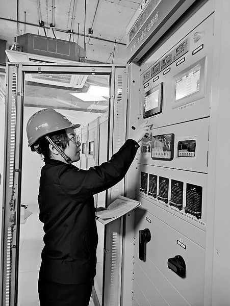 圖為蔣文君正在查看通訊電源電壓