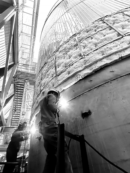 4月25日,晉南熱電今年最大的技術(shù)改造項(xiàng)目蒸汽梯級(jí)利用重要節(jié)點(diǎn)——2座儲(chǔ)熱罐順利建成。單罐有效容積900m3,通過(guò)螺桿膨脹機(jī)組和換熱器實(shí)現(xiàn)熱能“削峰填谷”。項(xiàng)目建成后,系統(tǒng)可在供熱低谷期儲(chǔ)熱、高峰期釋熱,優(yōu)化能源利用效率,減少浪費(fèi)。