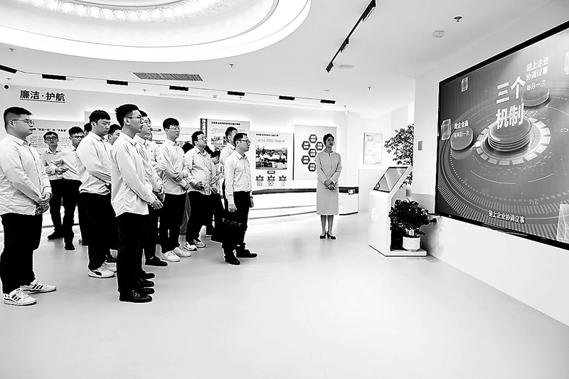 4月29日,福能新能源公司團委開展“以青春之火鑄時代擔當”活動,鼓舞廣大青年傳承能化人“能戰斗、能拼搏、能奉獻”的昂揚精氣神,為公司高質量發展貢獻“青智慧、青力量”。圖為團員青年參觀集團展廳。