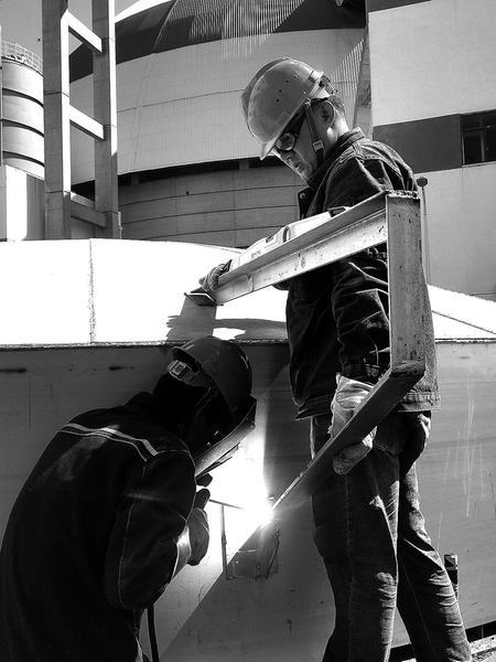 年初以來,晉南熱電公司多項(xiàng)技術(shù)改造項(xiàng)目有序推進(jìn),其中化水二級(jí)反滲透按計(jì)劃順利推進(jìn),經(jīng)過一周持續(xù)施工作業(yè),容積500立方米的除鹽水罐加工完成。圖為施工人員正在現(xiàn)場(chǎng)進(jìn)行除鹽水罐體的加工焊接。