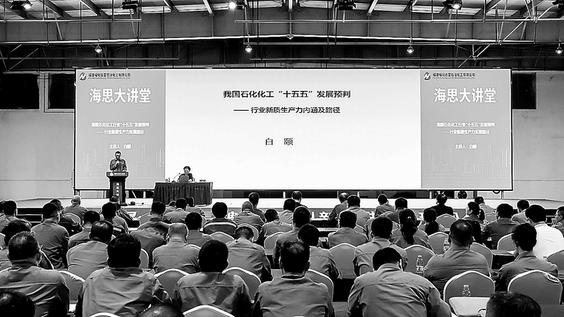 6月17日晚,石油和化學工業規劃院原副院長、總工程師白頤教授在海思大講堂講授專題講座。福建省石油和化工行業協會會長林立、秘書長方向陽,集團古雷片區權屬各企業主要負責人及干部職工共200多人參加講座。白頤的授課對各企業在“十五五”期間實現高質量發展具有重要的指導和借鑒意義。