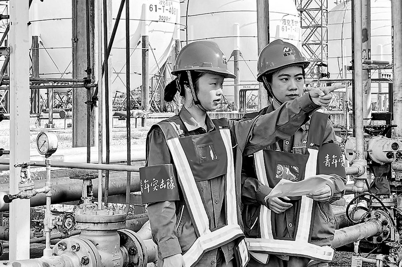 7月22日,福海創(chuàng)公司開展2025年罐區(qū)檢修。圖為該公司儲運團隊青年突擊隊隊員在檢修現(xiàn)場進行指導。