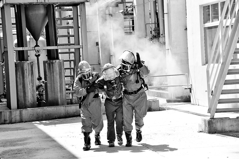 7月23日,東南電化公司開展氯氣泄漏綜合應急演練。此次演練模擬二期液氯氣化器法蘭處氯氣泄漏應急救援。圖為演練現(xiàn)場。 (肖文平 攝)