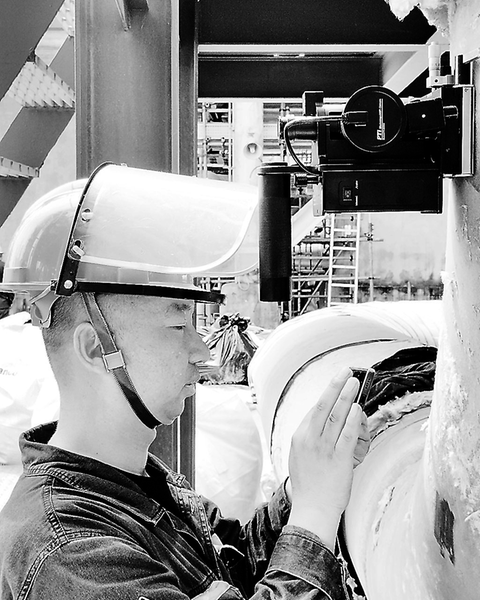 夏日炎炎,烈日當空。近日,在福海創(chuàng)公司大檢修現(xiàn)場,專業(yè)檢驗人員頂著高溫,全力投身壓力容器、壓力管道定期檢驗工作。 (徐志鵬 攝)