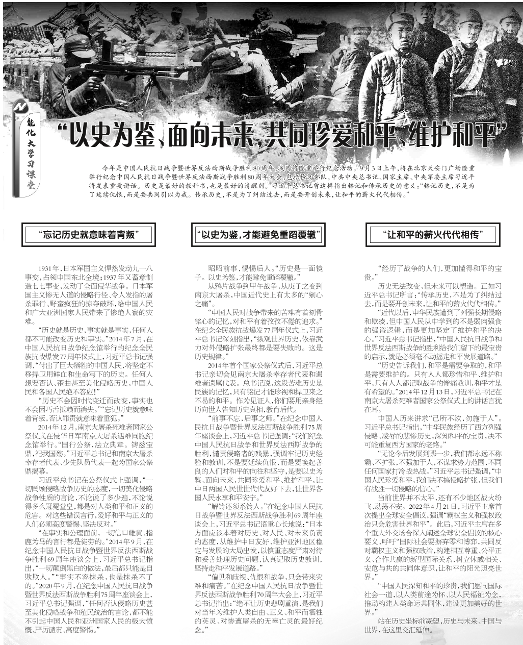 “以史為鑒、面向未來,共同珍愛和平、維護和平”