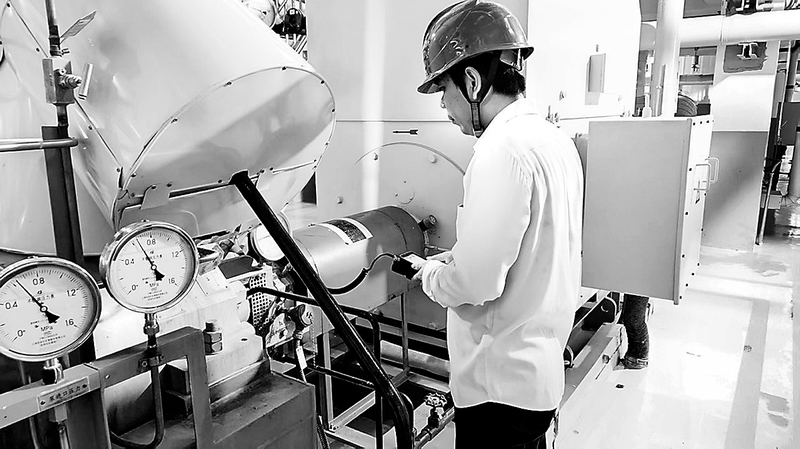 近日,龍安熱電公司設(shè)備管理部檢修人員在高溫環(huán)境中堅(jiān)守崗位,用身影在熱浪里刻下責(zé)任的印記。圖為檢修人員在細(xì)致地檢查給水泵。 (涂瑞興 攝)