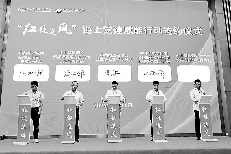 在簽約儀式上,福建省電力企業(yè)協(xié)會、福能新能源公司、福建閩投新能源運管公司、中廣核新能源福建公司、華新福建分公司、福建龍源公司、華潤電力福建公司、國能風電公司、晉江氣電等企業(yè)黨組織或其下屬黨支部共同鄭重簽名,表達了要通過“紅鏈追風”鏈上黨建賦能行動,以黨建為紐帶,通過構(gòu)建“紅鏈”,打破企業(yè)間的壁壘,促進資源共享、優(yōu)勢互補,形成強大的產(chǎn)業(yè)合力。