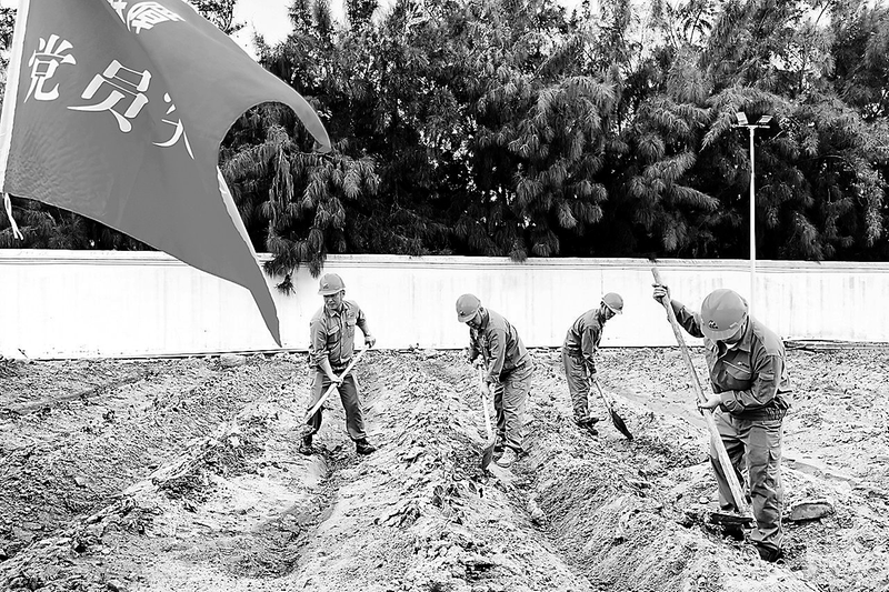 近日,福海創(chuàng)公司海邊倒班宿舍旁的閑置沙地?zé)ㄐ骂仯摴揪C合第二黨支部后勤保障黨員突擊隊(duì)在此種下2400余株地瓜苗,讓1200平方米沙地重獲生機(jī)。接下來,突擊隊(duì)將定期照料地瓜苗,通過種植地瓜盤活土地、綠化環(huán)境,更給員工生活添份期待。 (蔡春苗 攝)