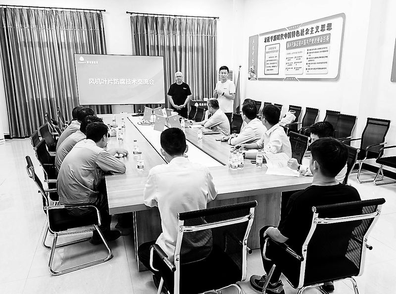9月20日,福能新能源公司特邀丹麥海虹老人公司葉片防腐專家到隆教風(fēng)電場(chǎng),就風(fēng)電機(jī)組葉片前緣保養(yǎng)、日常維護(hù)、修復(fù)工藝等開(kāi)展深入交流,進(jìn)一步提升風(fēng)機(jī)葉片的防腐性能,延長(zhǎng)其使用壽命,減少葉片老化造成的能量損失,提高風(fēng)電機(jī)組的發(fā)電效能。 (黃黎煌 許炳華 攝)