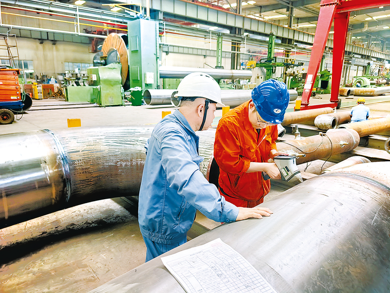 近日,為高效推進(jìn)古雷石化基地?zé)犭娐?lián)產(chǎn)南部熱力管網(wǎng)項目(中沙乙烯項目蒸汽管道專項)的采購及工廠預(yù)制工作,古雷熱電公司組織人員奔赴管道生產(chǎn)一線,肩負(fù)監(jiān)造重任,在質(zhì)量把控與進(jìn)度推進(jìn)上雙向發(fā)力,為熱力管線夯實(shí)安全運(yùn)行的基礎(chǔ)。圖為監(jiān)造人員檢測管道焊口光譜。
