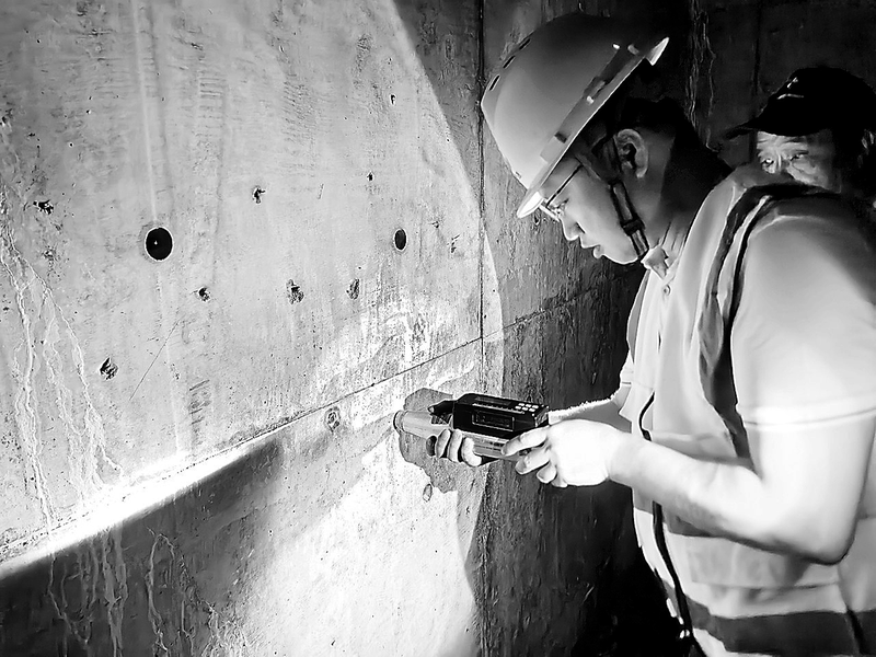 圖為何焰在工地現(xiàn)場檢測混凝土強度