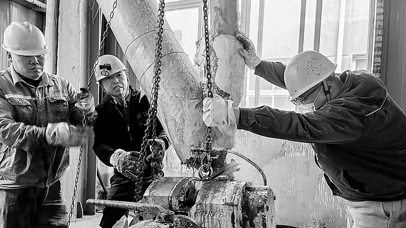 目前,維綸改性纖維市場熱銷,福維公司緊跟市場需求,在精心組織生產的同時,抓好關鍵設備備件維修,實行設備“輪崗”管理,確保生產穩(wěn)定,產品及時供應到位。圖為11月20日,該公司維綸廠檢修人員利用午休時間更換凸輪泵。 (張發(fā)煒 攝)