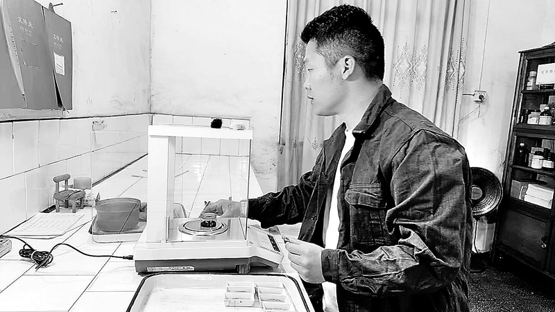 (黃云燕 攝影報(bào)道)圖為陳首源稱量煤樣