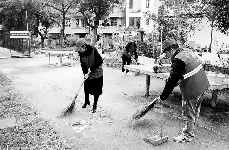 1月12日,永安煤業(yè)公司上京供電所志愿者到永安市燕南街道龍嶺社區(qū)開展“共建文明永安,你我共同參與”志愿活動。圖為志愿者在社區(qū)體育場打掃環(huán)境衛(wèi)生。 (鄭春生 攝)