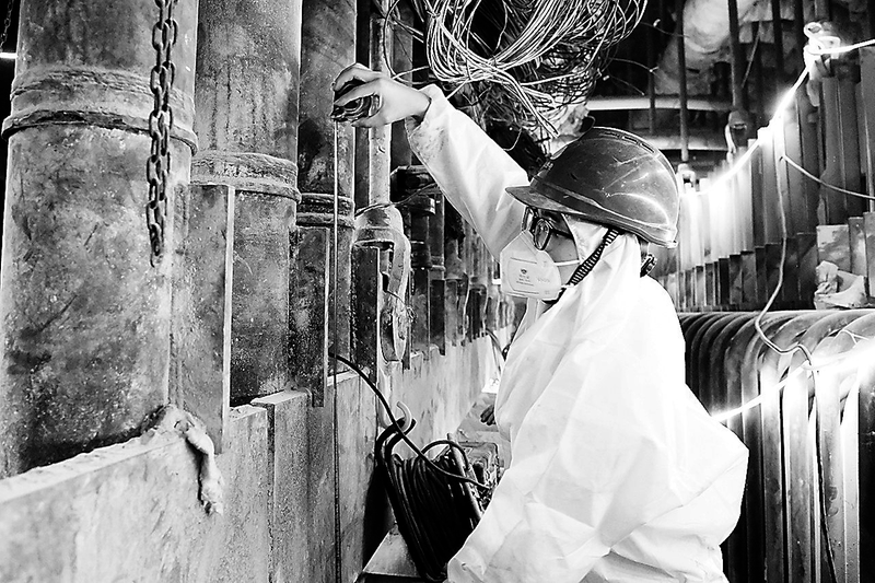 1月8日凌晨,隨著最后一臺(tái)磨煤機(jī)燒空,匯報(bào)省調(diào)#2機(jī)組順利解列,鴻山熱電公司2026年度檢修工作正式啟動(dòng)。圖為設(shè)備部鍋爐點(diǎn)檢工程師在#2鍋爐大包內(nèi)復(fù)驗(yàn)高溫再熱器集箱氣管環(huán)切高度。 (潘進(jìn) 攝)