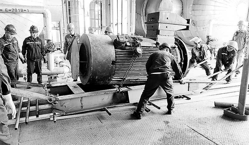 本次搶修最大難點(diǎn)在于設(shè)備轉(zhuǎn)運(yùn)。故障電機(jī)位于6樓且無(wú)行車,7.6噸新電機(jī)需人工轉(zhuǎn)運(yùn)80米,途經(jīng)多處轉(zhuǎn)角與設(shè)備密集區(qū),作業(yè)難度大、風(fēng)險(xiǎn)高。搶修團(tuán)隊(duì)組建牽引、導(dǎo)向、防護(hù)專項(xiàng)小組,18名人員協(xié)同發(fā)力、精準(zhǔn)配合,僅用20分鐘便將電機(jī)平穩(wěn)送至吊點(diǎn)。安裝階段,各專業(yè)嚴(yán)格執(zhí)行“專人負(fù)責(zé)、專人復(fù)核”,高效完成尺寸復(fù)核、接線檢測(cè)與校準(zhǔn)找正。至當(dāng)日15時(shí),歷經(jīng)12小時(shí)連續(xù)奮戰(zhàn),順利完成電機(jī)更換。